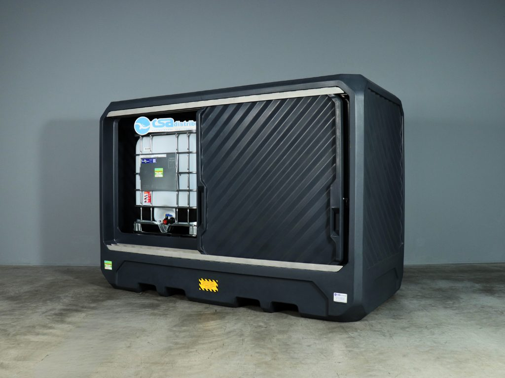 Armadio di contenimento in polietilene per lo stoccaggio di 2 cisterne da lt 1000