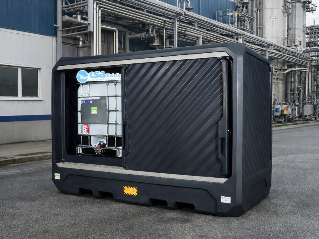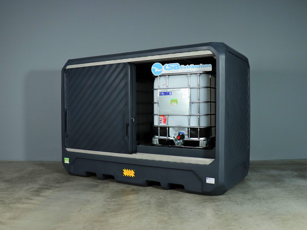 Armadio di contenimento in polietilene per lo stoccaggio di 2 cisterne da lt 1000.